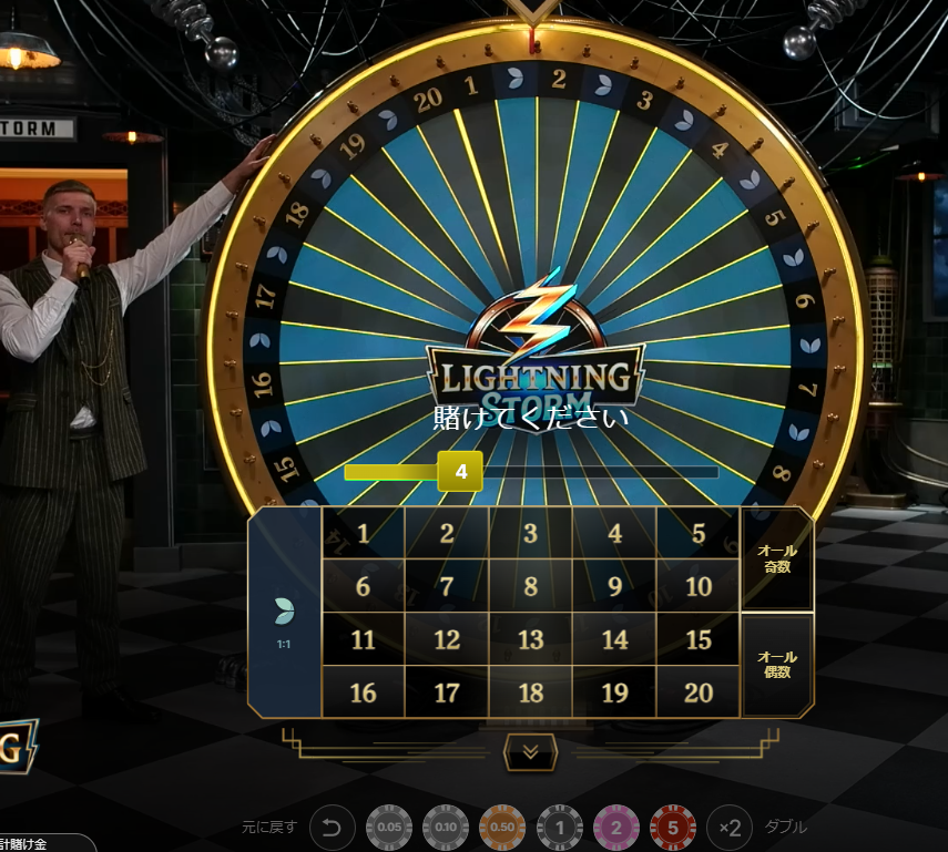 1万円使って5万円分のチップをゲットしたとします(4万円の勝ち)。