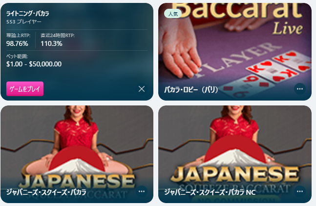 バカラは「カジノの王様」と言われていてカジノ全体で人気が高いですが、臨場感が味わえるライブカジノで特に人気があるゲームです☆