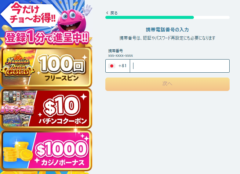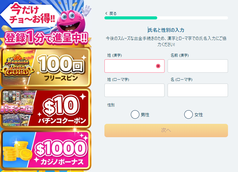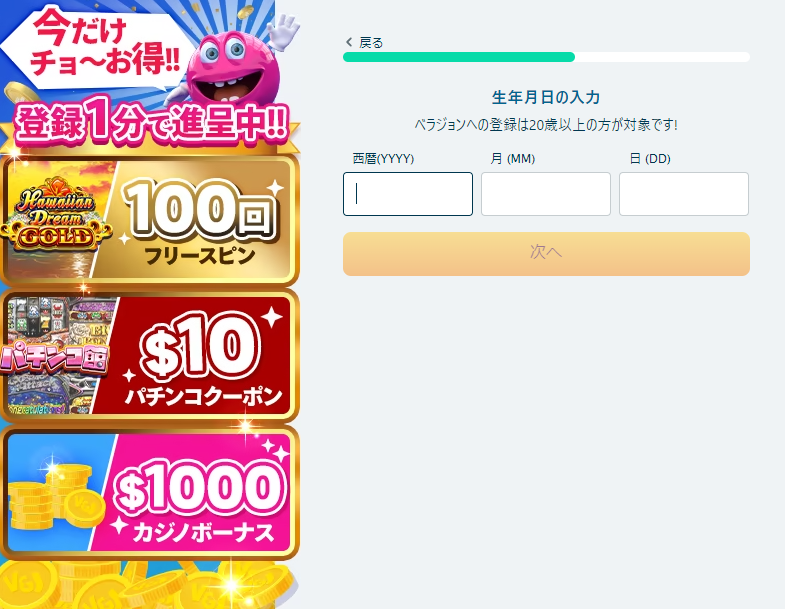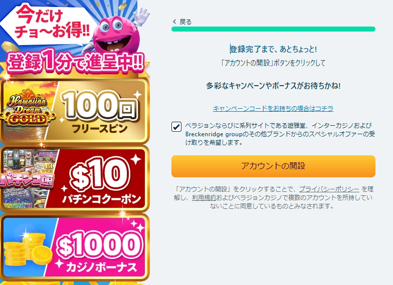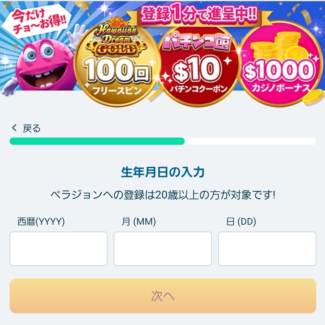 オンラインカジノ「ベラジョンカジノ」への登録はとても簡単☆